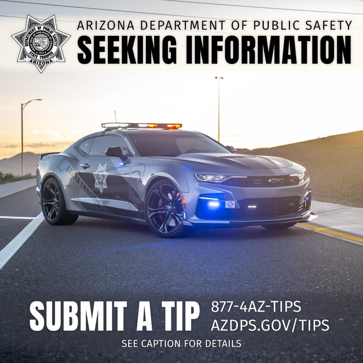 Anyone with information is asked to call 1-877-4AZ-TIPS or submit a tip online at azdps.gov/tips. Please reference incident I26013754.