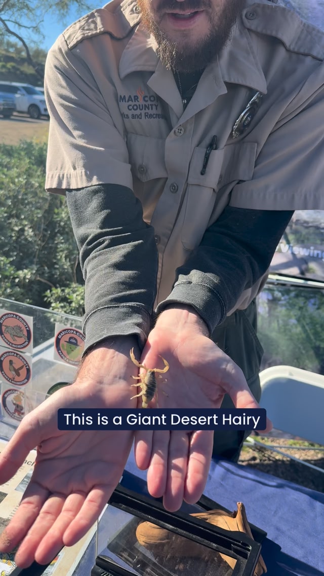 Maricopa County Parks has issued a feature titled Love the Unloved, highlighting Luisa, the desert hairy scorpion, and Ranger Shaun. The post clarifies, “By it, we mean the desert hairy scorpion, NOT Ranger Shaun.”